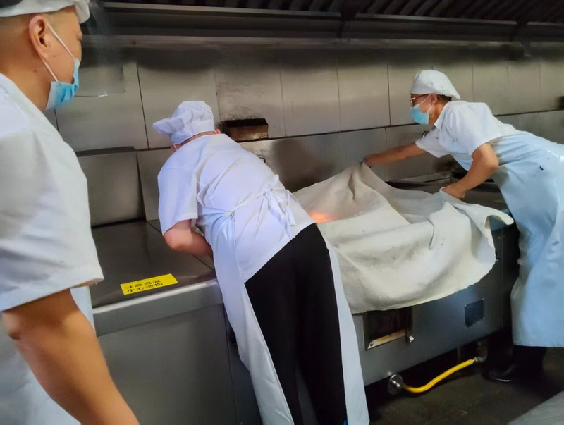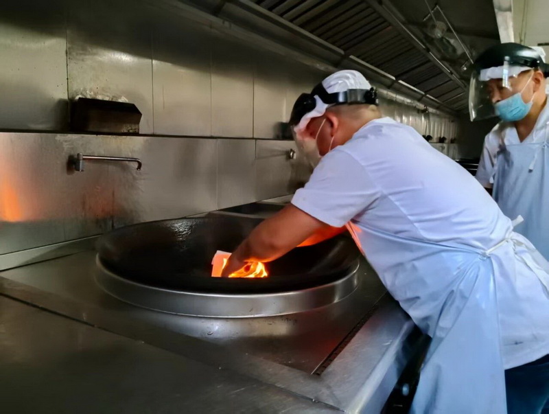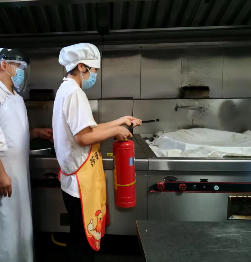 To enhance kitchen staff's emergency response capabilities for stove fires and strengthen fire safety awareness, our school recently held a special stove fire drill in the kitchen.