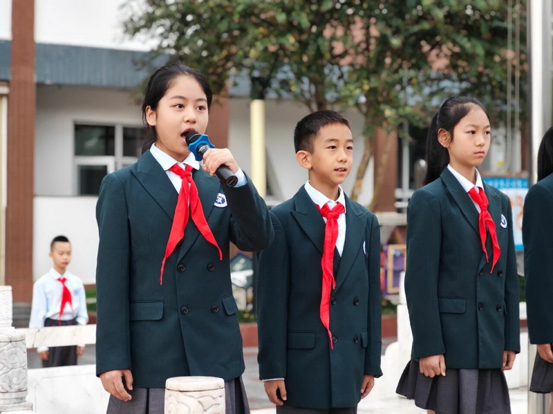 In order to celebrate the 76th anniversary of the founding of the Chinese Young Pioneers, our school grandly launched a series of activities on October 13th with the theme of "Rejuvenation of a Strong Country and Strive to Be a Good Teenager in the New Era".