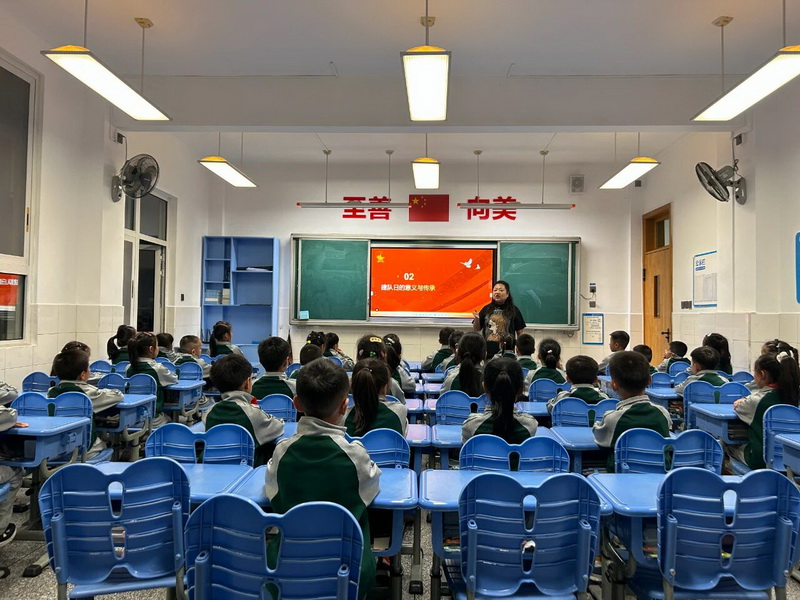 红旗飘扬引航向,童心向党筑梦想。为庆祝中国少年先锋队建队76周年,引导广大少先队员传承红色基因、赓续红色血脉,我校于10月13日隆重开展“强国复兴有我 争当新时代好少年”主题建队日系列活动,通过庄严仪式、生动主题班会、入队仪式等,让红色种子在队员心中生根发芽。