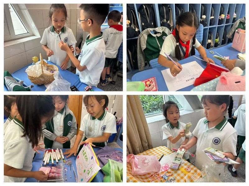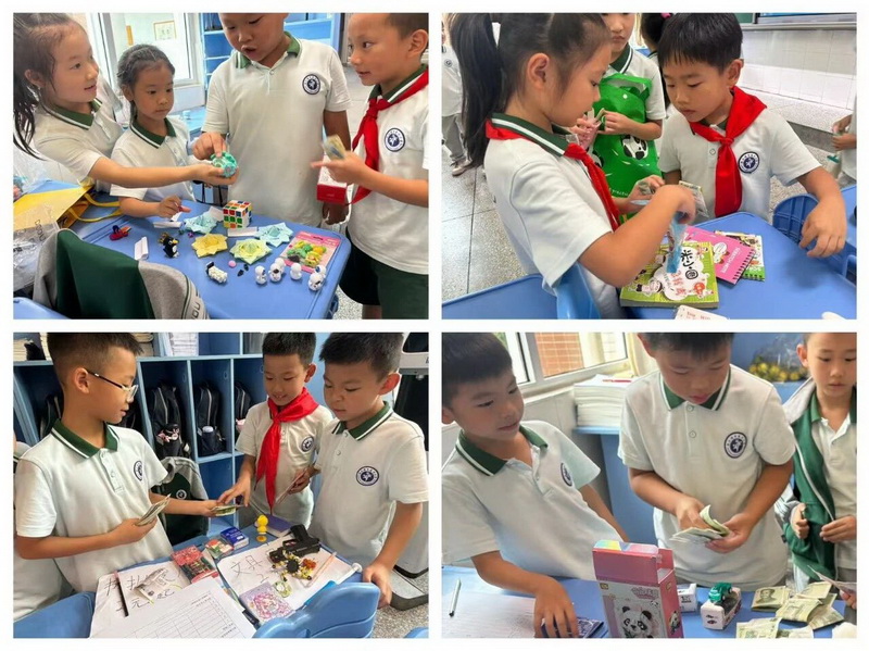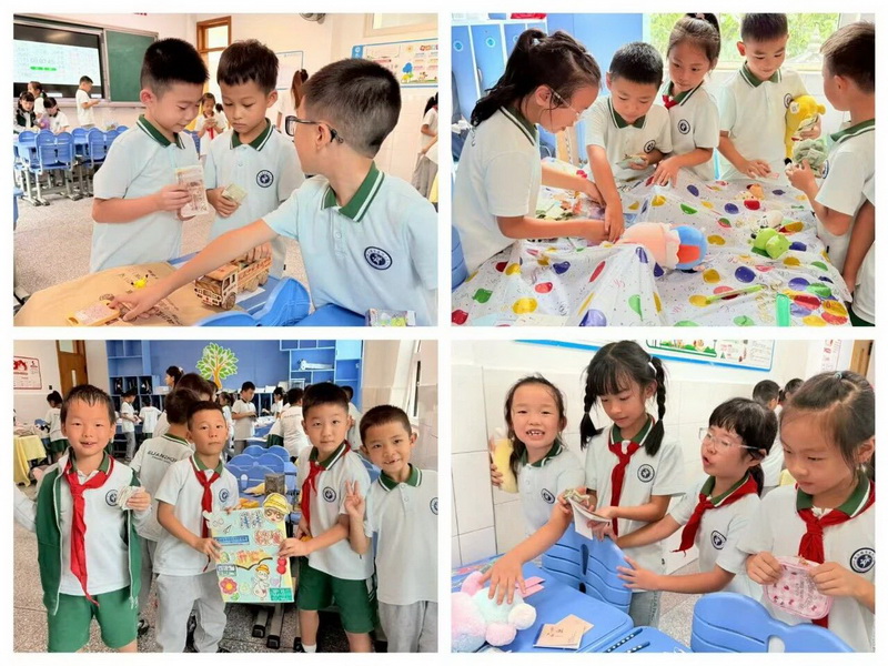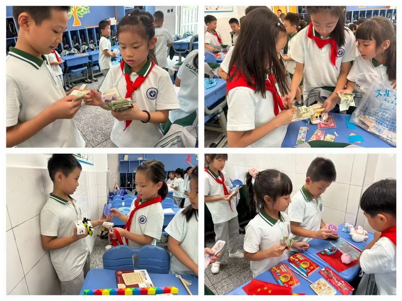 二年级的活动则充满了生活气息与爱心温度。活动中,孩子们化身“小小理财家”,通过模拟购物游戏,认识人民币面值、学习找零计算,在实践中轻松掌握了货币使用技巧。“义卖献爱心”活动更是将学习成果转化为温暖行动——孩子们带来闲置物品,定好价格、热情叫卖,用交易所得汇聚成爱心基金,这份爱心基金最终变成了康定宜代小学小朋友们课桌上的文具。这不仅让孩子们体会到数学在生活中的实用价值,更在心中种下了关爱他人、乐于分享的种子。