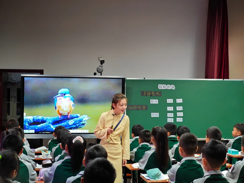 Teacher He Jiaqi of Puyang Primary School taught "The Bird on the Boat".