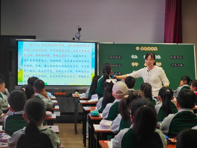 Teacher Luo Pin of Li Bing Primary School gave a class "Golden Grass".