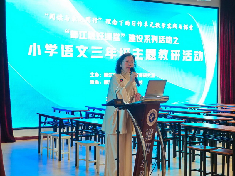 为进一步推进我市“都江堰好课堂”建设,提升教师教学能力,提高小学语文课堂教学效益和质量,落实《义务教育语文课程标准(2022版)》要求,促进学生核心素养发展,都江堰市小学语文三年级教研活动在我校举行。教研室任小英老师与全市三年级语文教师齐聚一堂,探讨部编版教材“缤纷世界”习作单元的教学,让“阅读与表达同行”的教育理念在课堂中落地生根。