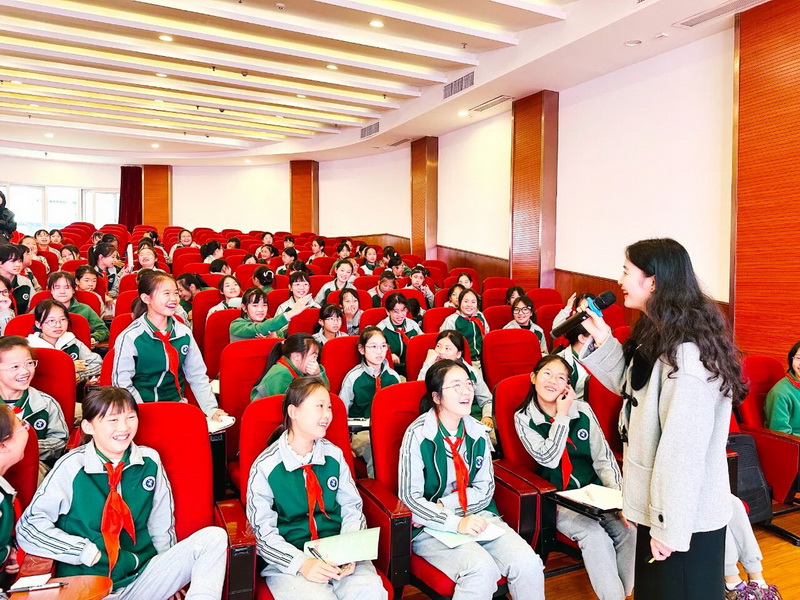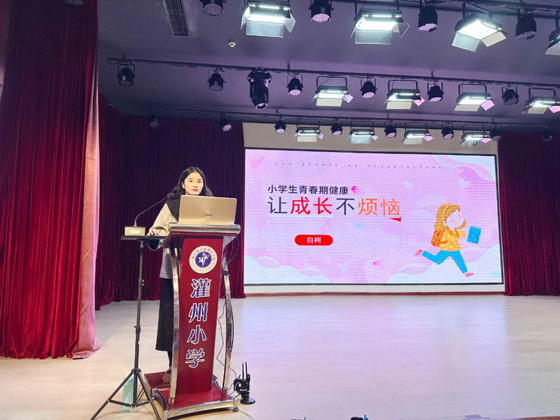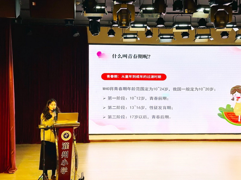 为帮助女生们正确认识和应对青春期的身心变化,我校专职心理教师白柯于10月23日为六年级女生带来了一场以“让成长不烦恼”为主题的青春期专题讲座。 To help girls correctly understand and cope with the physical and psychological changes during adolescence, Bai Ke, a full-time psychology teacher at our school, gave a special lecture on adolescence to sixth-grade girls on October 23rd.