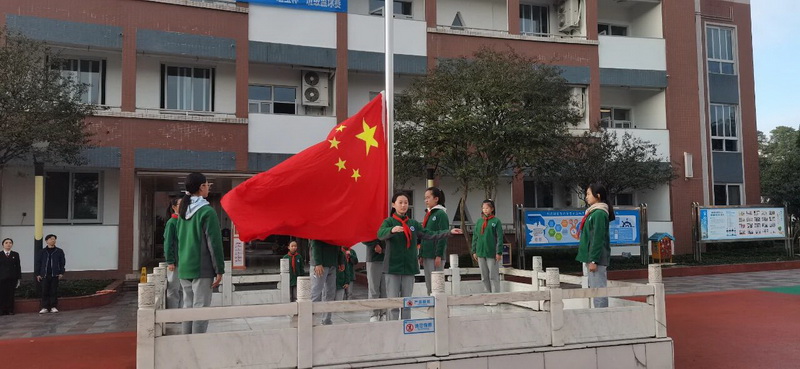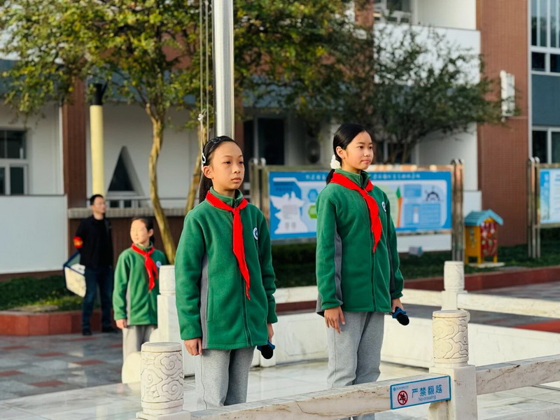 At the flag raising ceremony on Monday, students from the school's brigade department gave a speech under the national flag titled "Say 'No' to Campus Bullying".