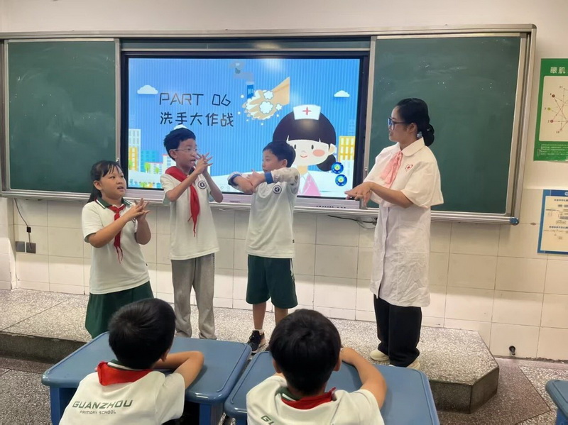 In Class 1Grade1, the mother of Bao Yunxi presented a lesson on "Prevention of Hand - Foot - Mouth Disease and the Seven - Step Handwashing Technique".