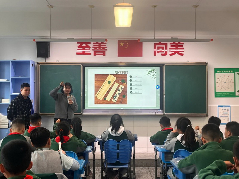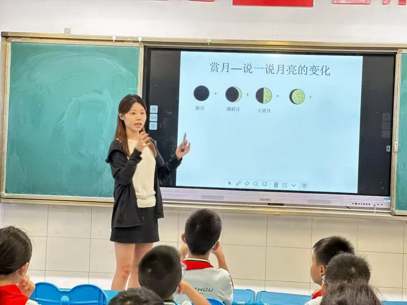 In Class4 Grade4, he sister of Wu Zhouyutong presented a course named "Welcoming the Mid - Autumn Festival"
