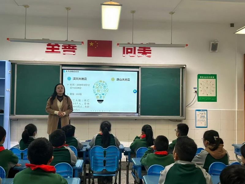 In Class1 Grade5,the mother of Wu Yanyang presented "A Child's Perspective on the Earthquake"