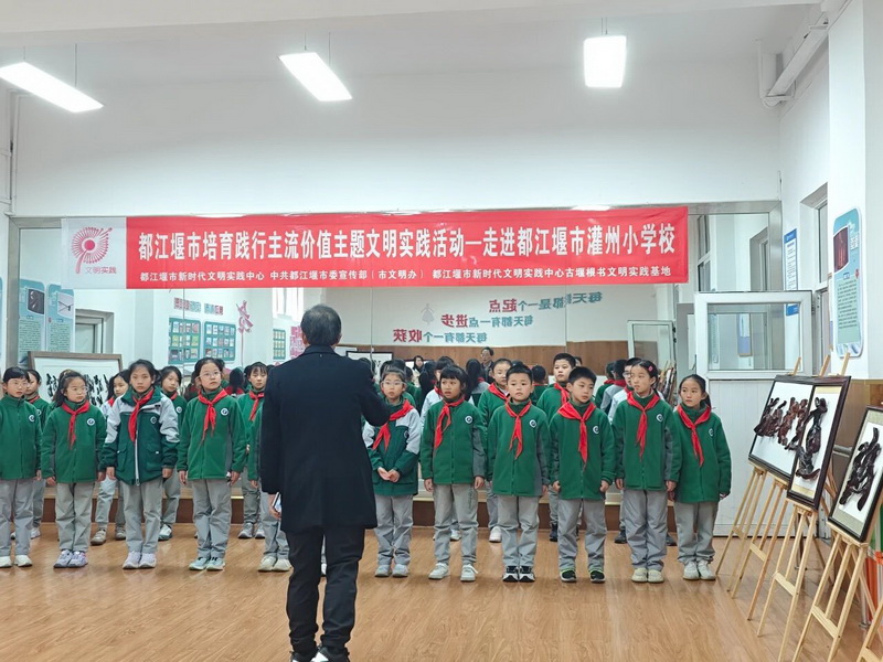 近日,由都江堰市新时代文明实践中心、中共都江堰市委宣传部(市文明办)主办的“培育践行主流价值”主题文明实践活动走进灌州小学校。