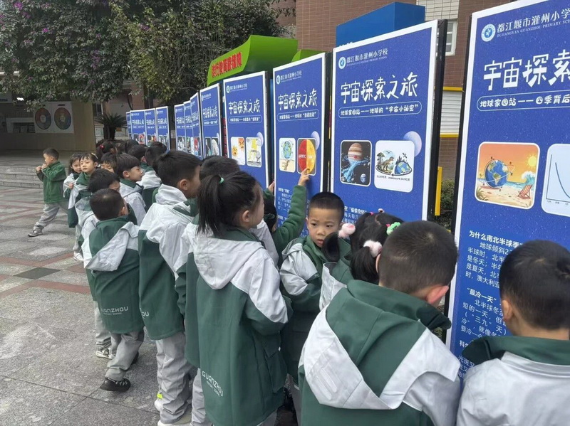 The astronomical knowledge themed exhibition board has become the favorite of children during break time. What used to be boring knowledge has become an interesting game during break time.