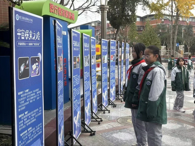 天文知识主题展板,成了孩子们课间的最爱:展板上有五颜六色的宇宙图片,搭配简洁易懂的文字,把星星形成、太阳系组成等知识讲得明明白白。下课铃一响,孩子们就围拢过来,和小伙伴讨论行星特点、认读天文小知识……原本枯燥的知识变成了有趣的课间游戏,大家在打卡玩耍中轻松get星空密码。