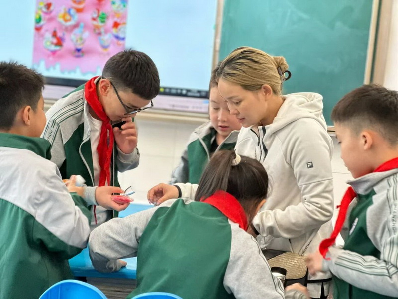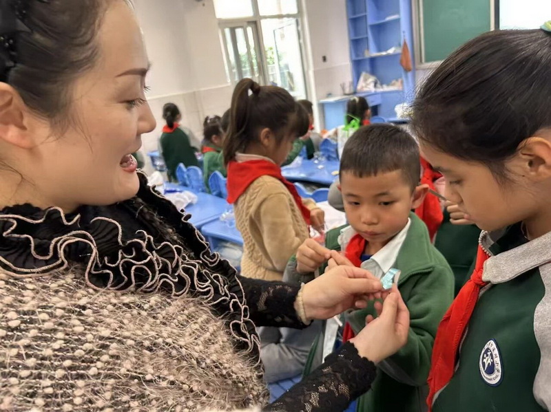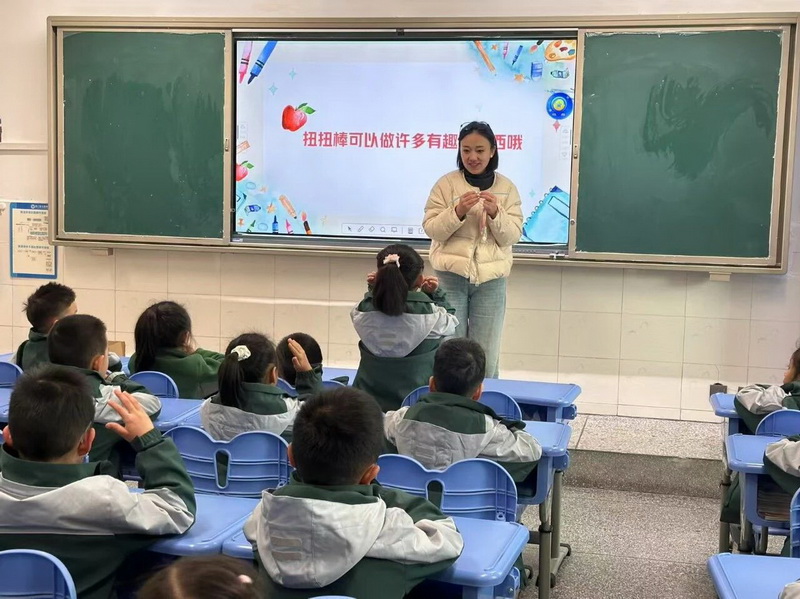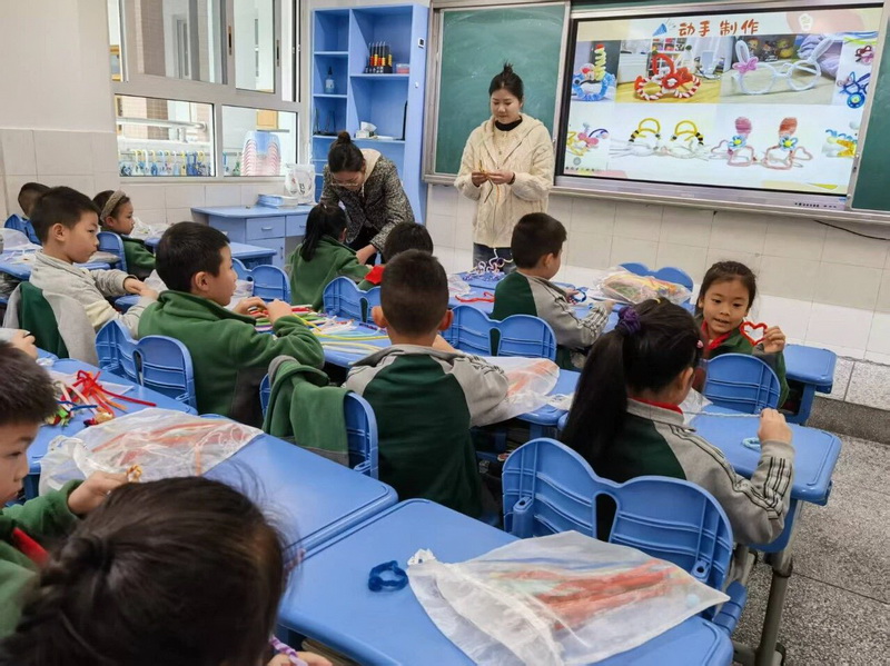 1.1班东州尼玛的妈妈带孩子们制作了扭扭棒,孩子们在这堂手工课上感受了不一样的乐趣。