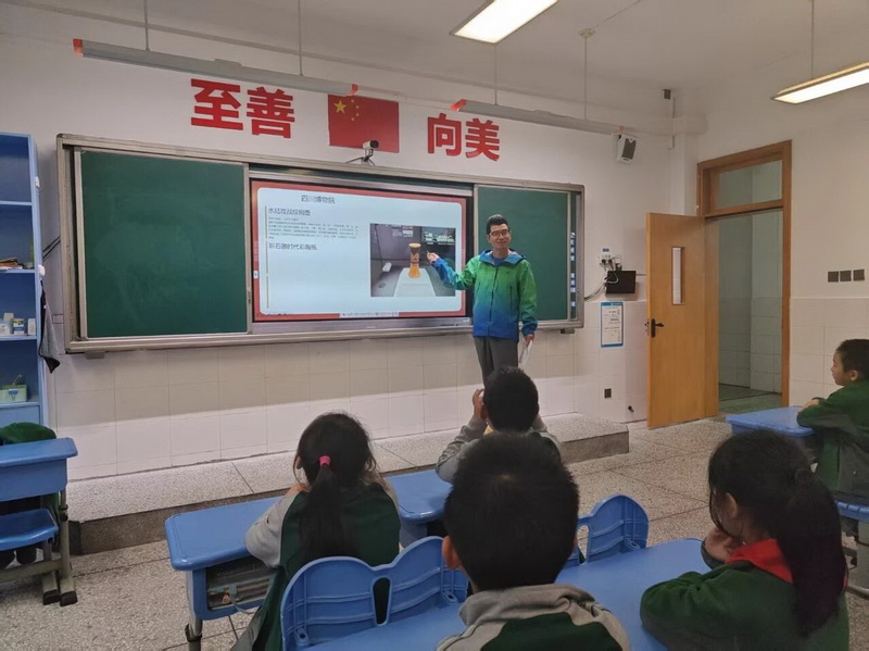 4.1班朱天骏阿姨带来家长课堂“探秘都江堰”。