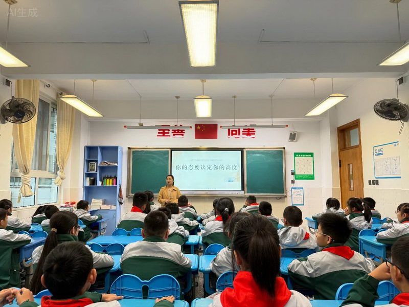 6.2班刘亦玮小姨走进课堂,针对六年级学生现在的现状,为大家带来了一堂精彩的课——《你的态度决定你的高度》。