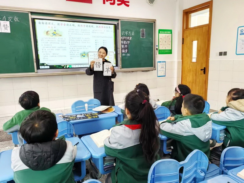 Guanzhou Primary School’s school-based teaching research adopts an overall perspective, clearly grasping the knowledge connection points and skill progression paths between first and second grades. In a school-based teaching research session focused on "Basic Learning Task Clusters," Mr. Xia Tianhao from the first-grade group taught the pinyin lesson 《ao ou iu》, while Ms. Dong Tingting from the second-grade group conducted a literacy and writing lesson 《Praise》. The sessions highlighted coherence and progression, allowing teachers to precisely determine their future teaching direction by observing classroom participation and knowledge mastery across different grades within the same stage.