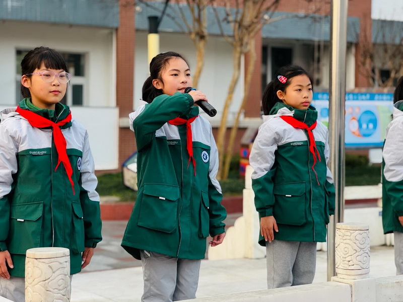 During the flag-raising ceremony, students delivered a speech emphasizing the importance of traffic safety and encouraged everyone to participate in and advocate for safe travel.