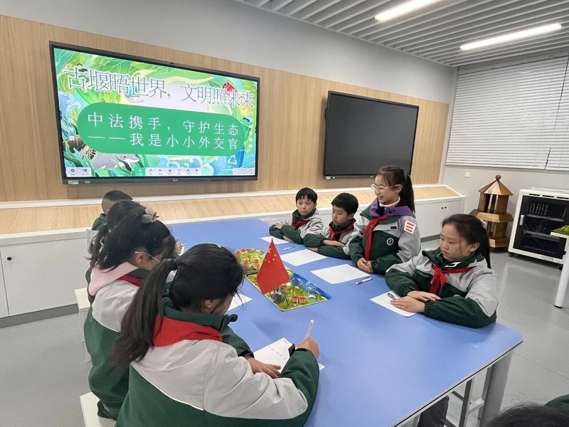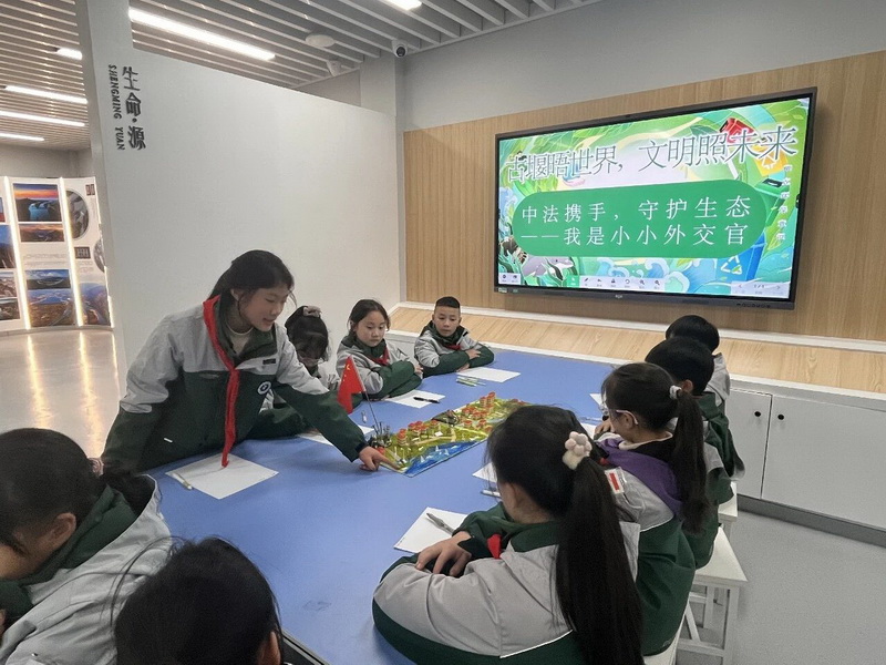 五年级的“生态保护” 模拟中法论坛、六年级的“文化交流” 主题对话,让学子们分别化身中方法方代表,各抒己见、平等交流。从生态治理的合作路径到文化传承的创新方式,少年们以多元视角碰撞思想,在模拟外交中深化对文明互鉴与大国担当的理解。Fifth and sixth graders took part in simulated Sino-French forums on ecological protection and cultural exchange, representing Chinese and French perspectives to discuss cooperation pathways and innovative approaches.