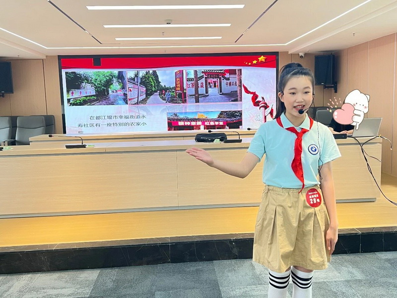 Ren Zien, a student from Guanzhou Primary School, actively volunteers at the Dujiangyan. She has received multiple honors for her long-term service and represented local Young Pioneers at a Youth League Congress.