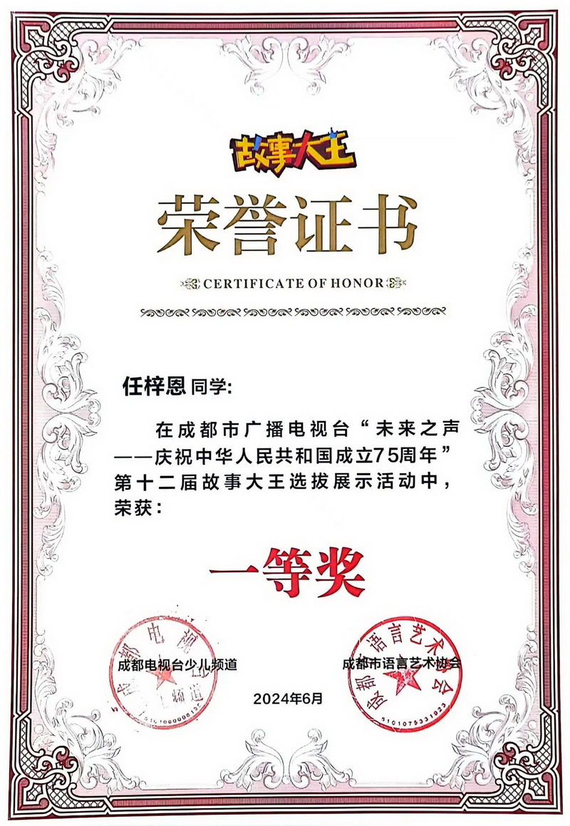 这份荣誉,是对她过往努力的最好肯定,更是激励她未来继续乘风破浪的号角。祝贺任梓恩同学!Congratulations to Ren Zien.
