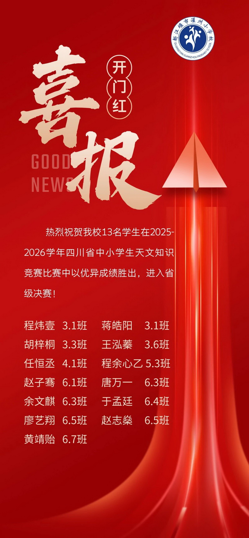 灌州·喜报 | 堰宝入围2025-2026学年四川省中小学生天文知识竞赛决赛Good News |