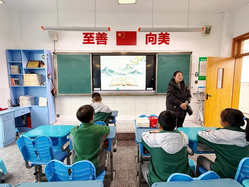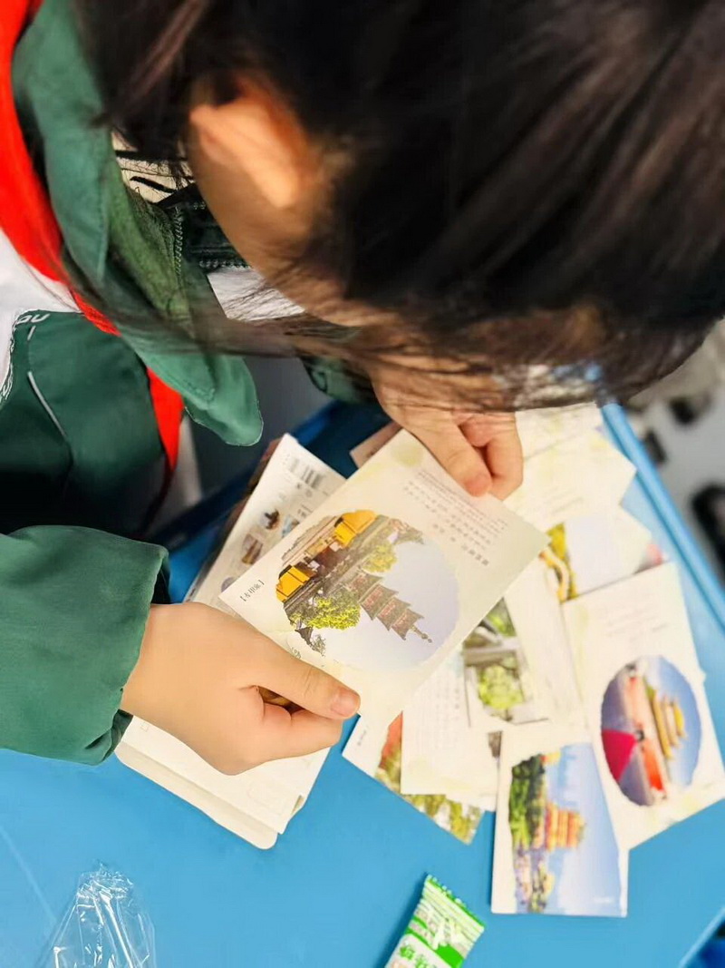 6.8班的教室里诗意盎然,肖彦伯妈妈带着精心准备的《跟着诗词去旅行》读书会,为孩子们打开了一扇“行走”的诗词之门。最让孩子们惊喜的是,肖妈妈还为每个人准备了专属的诗词卡片,孩子们捧着卡片,一边轻声诵读,一边互相分享自己“旅行”到的诗句。