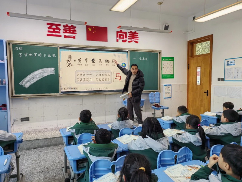 Teacher Xu Ranlin from Guanzhou Primary School delivered a Grade 1 Chinese lesson Little Painters in the Snow.