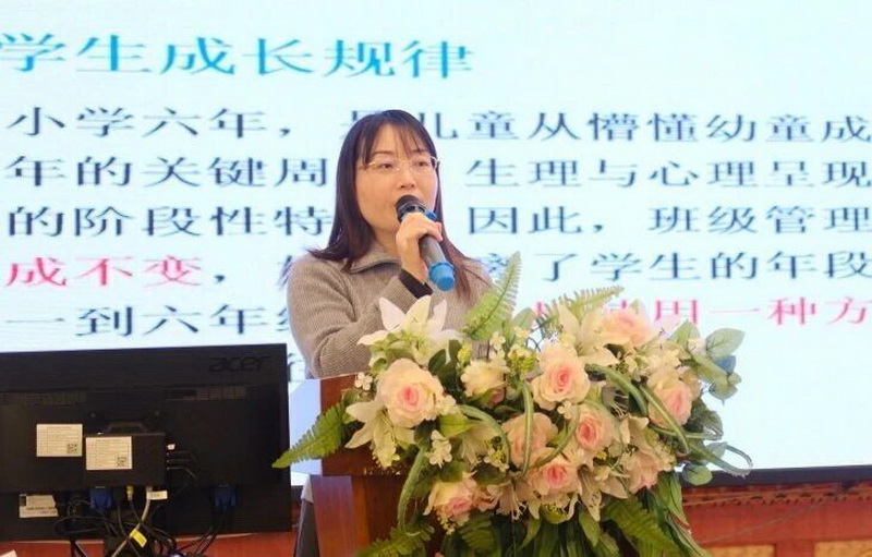 Teacher Liu Ying from Tuanjie Primary School in Dujiangyan City gave a special lecture on class management entitled Hierarchical Empowerment, Growth Step by Step.