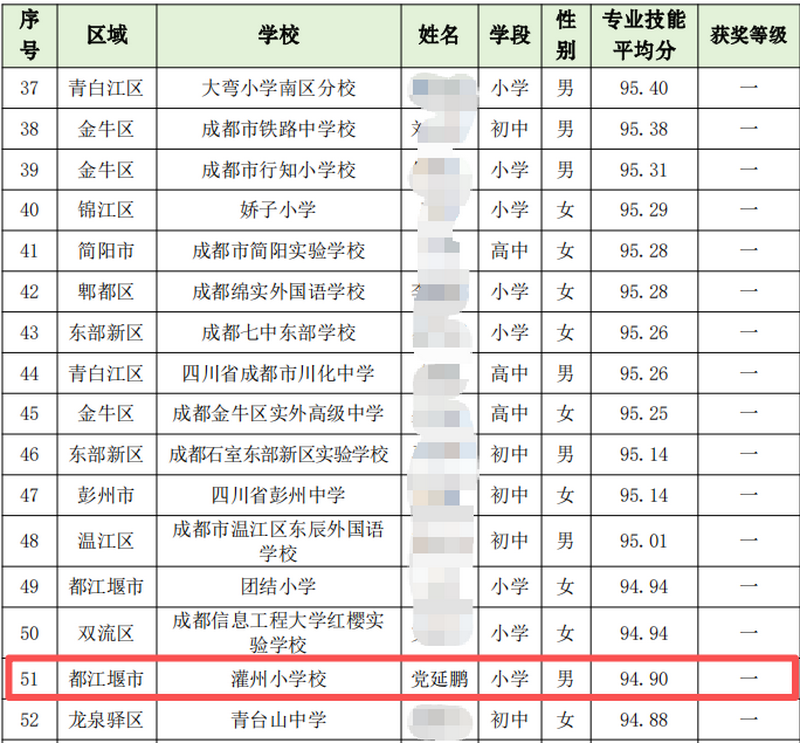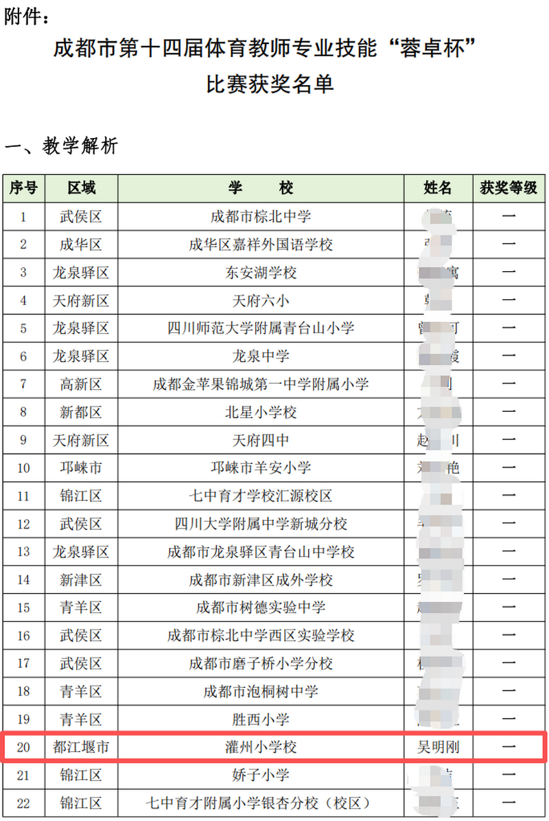 2025年11月中旬,成都市第十四届“蓉卓杯”体育教师技能大赛落下帷幕,我校吴明刚、党延鹏、余超三位教师代表都江堰市出征,在全市203名参赛精英的同台竞技中崭露锋芒,一举斩获2个一等奖、3个二等奖、1个三等奖的佳绩,为校争光!