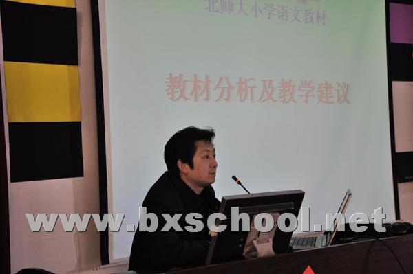 3月10日下午,教导处马主任以“教材分析及教学建议”为题对全校语文教师进行培训,把各年级的语文课程标准做了非常详细的解读,从“识字与写字”、“阅读”、“写话与习作”、“口语交际”和“综合性学习”五个方面提出了学生学习的重点和教师教学的方向。