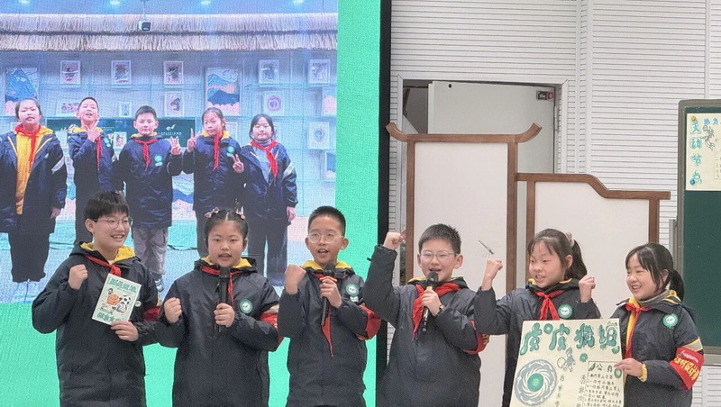 体育学科的《共享器材规划师:助力一年级活力课间正确打开的 N 种方式》,则聚焦课间器材使用的痛点,学生们设计出多样的课间活动方案,让体育器材的利用更高效、课间活动更富活力。成果展示环节,身着校服的小队员们自信地站在台前,手持绘制的“小兔运球”、“保龄小球王”等课间游戏海报。屏幕上孩子们挑选器材、热烈讨论的画面,与现场小队员们的展示相互呼应,定格了PBL学习中学生主动探究、协作成长的珍贵瞬间。