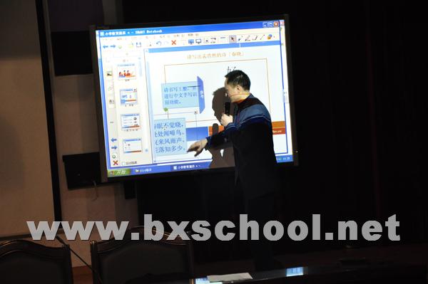 电子白板,又称是电子交互白板,是一种新的高科技电子教学系统。电子白板设计的互动理念,以及白板技术本身的互动性和操作性特点,作为一种变革性的教学手段,将促进我们课堂教学方式的改革,有利于教师和学生之间、学生和学生之间的互动学习,补充了从演示性多媒体教学到网络条件下的个别教学之间的空白,有利于推动信息技术与学科教学的整合。 学校新进的电子白板已经全部安装到位,周日下午,全校教师利用休息时间学习了白板在教学中的运用方法和技巧,在以后的教学中,我们将充分利用电子白板完成呈现、展示、交流、互动、合作,拓展教学资源,优化教学过程,让老师高效教学、学生快乐学习。