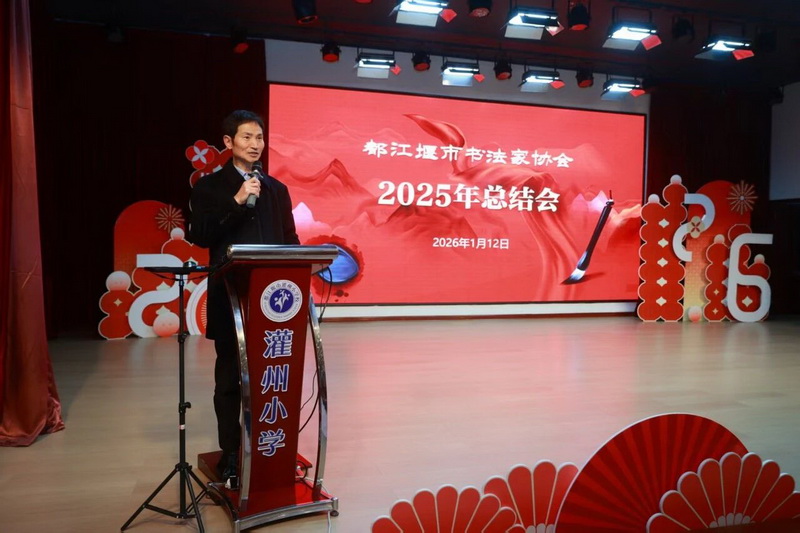 2026年1月12日,冬阳和煦,雅韵悠扬。都江堰市灌州小学内墨香袅袅,“翰墨润古堰 书香满校园——都江堰市书法家协会进校园活动”在此精彩启幕,都江堰市书法家协会年会亦同步拉开帷幕。来自市书协的各位同仁与灌州小学的师生齐聚一堂,共同沉浸在书法艺术的独特魅力之中,开启了一场兼具文化传承与校园活力的美好邂逅。