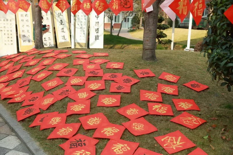 最富韵味的当属现场创作环节。书协会员与师生们同台挥毫,红笺铺展,墨汁飘香。一个个饱满喜庆的“福”字跃然纸上,一副副寓意吉祥的春联落笔成章,不仅将新春的美好祝愿融进字里行间,更让大家直观感受书法艺术的传承力量,沉浸式体验中华优秀传统文化的博大精深。