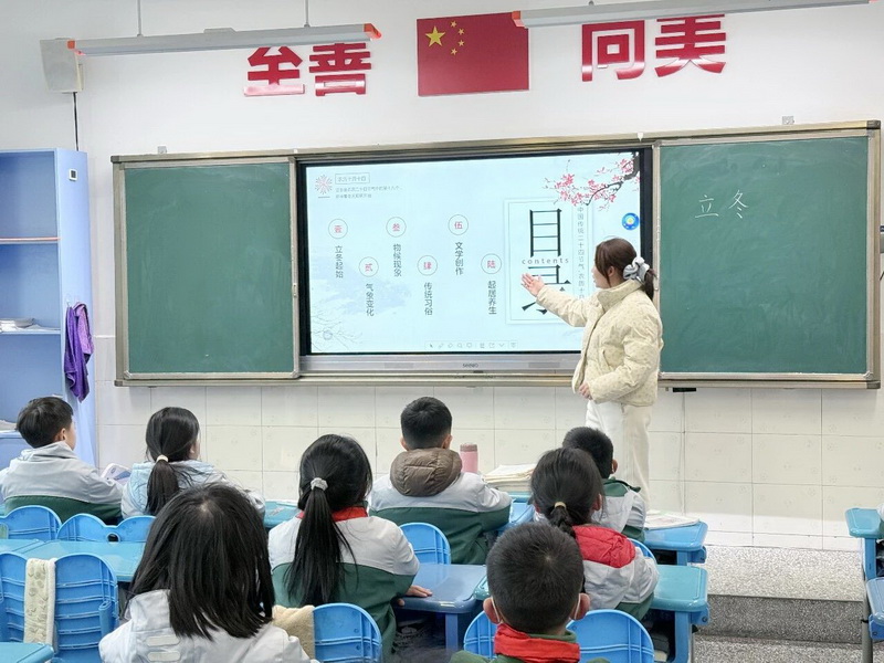 Teacher Jia Linlang's class on Major Snow was innovative. Combining the farming proverb "Major Snow freezes the rivers", she conducted an in-depth exploration of the connotation of the solar term and phenological changes.