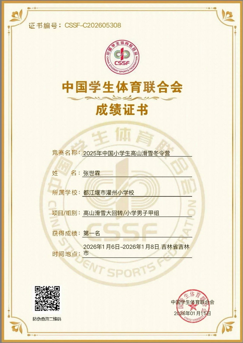 荣耀的背后,是日复一日的刻苦付出。数九寒天,雪道上留下了他们训练的身影——顶冽风、踏寒雪,反复打磨每一个转弯、滑行动作;一次次跌倒,又一次次咬牙站起,用汗水突破技术瓶颈,用坚韧对抗训练的枯燥。这份不畏挑战、奋勇争先的拼搏精神,不仅是两位同学的成长勋章,更是全校学子的榜样力量。愿灌州少年们皆能追光前行,在各自的天地里绽放异彩!