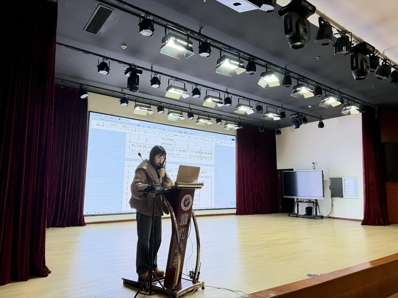 During the centralized reporting session in the academic hall, teachers were randomly selected to share their research findings.