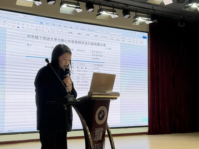 在学术厅集中汇报环节,随机抽取了老师进行分享研读成果。汇报教师结合单元整体,从课标落实路径、教材内容解读、教学方法设想等方面展开详细阐述,展现了扎实的教研功底。其他教师认真倾听,在思想碰撞中进一步深化了对教材的理解,凝聚了教学共识。