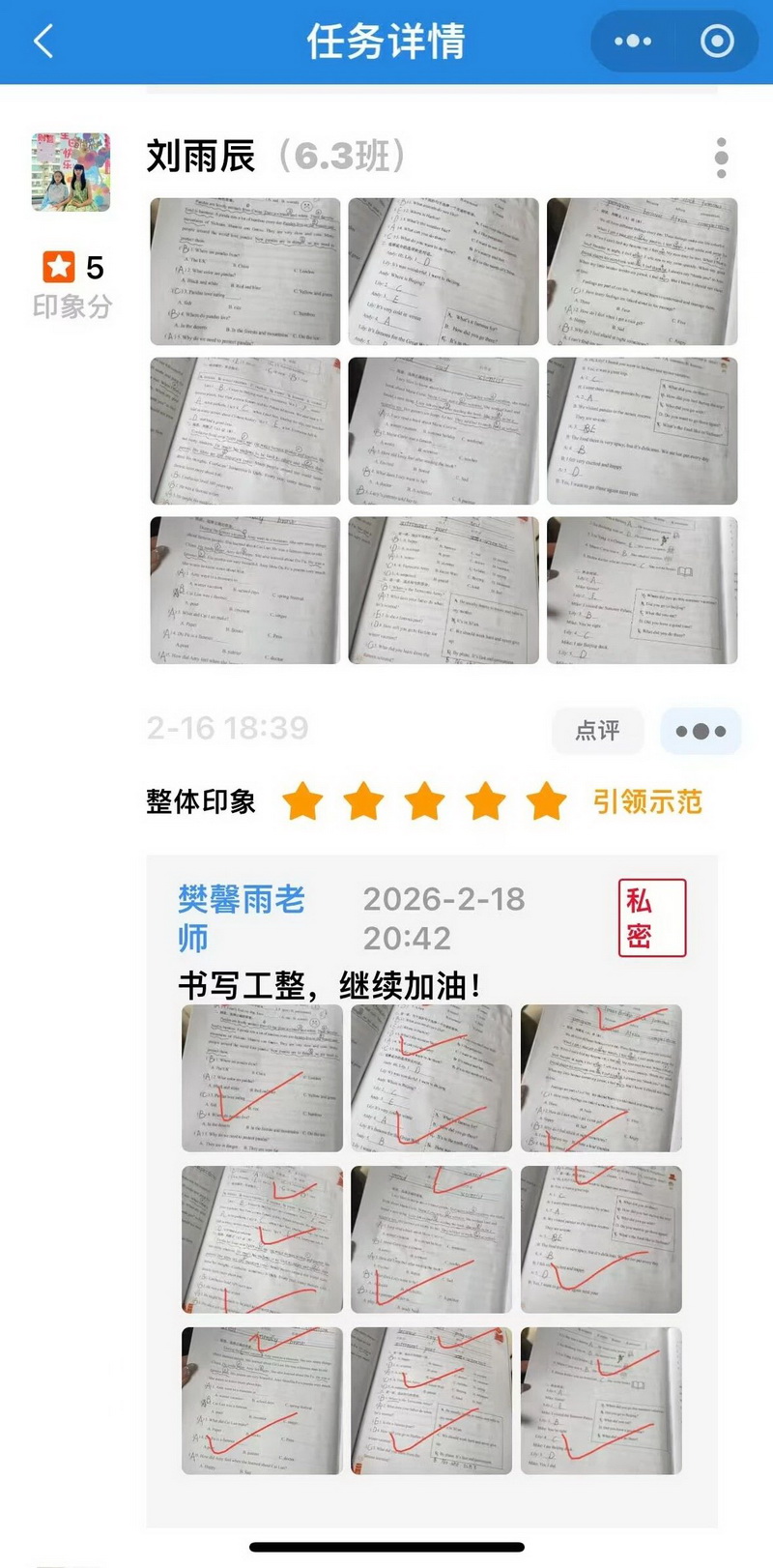 They correct every assignment, reply to every question and care for every student. With professional guidance and warm comments, teachers serve as a strong support for students’ holiday learning, showing the dedication and responsibility of educators.