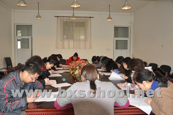 为了进一步学习和贯彻课程标准,深化教育改革,全面推进素质教育,提高教学质量,我校组织全体老师进行课程标准和学习和考核。2010年3月30日下午,数学老师首先完成了第一轮的理论考核。