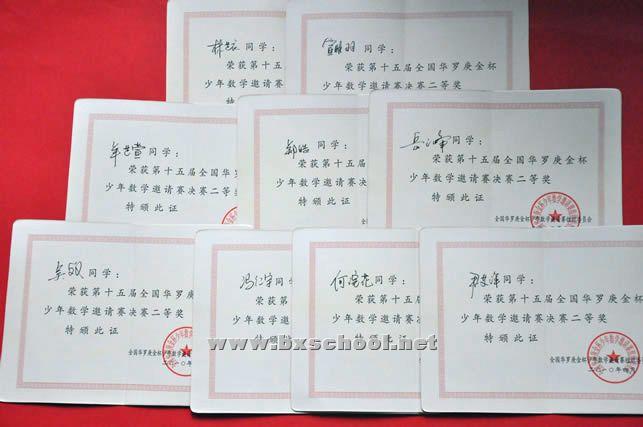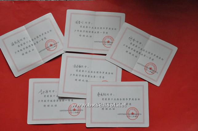 在本届“华杯赛”中,都江堰赛区共有8名同学获一等奖,其中我校有6名同学获此殊荣,他们分别是周晋川、李千浔、蔡彦松、杨启航、何乔、陈奕舟。