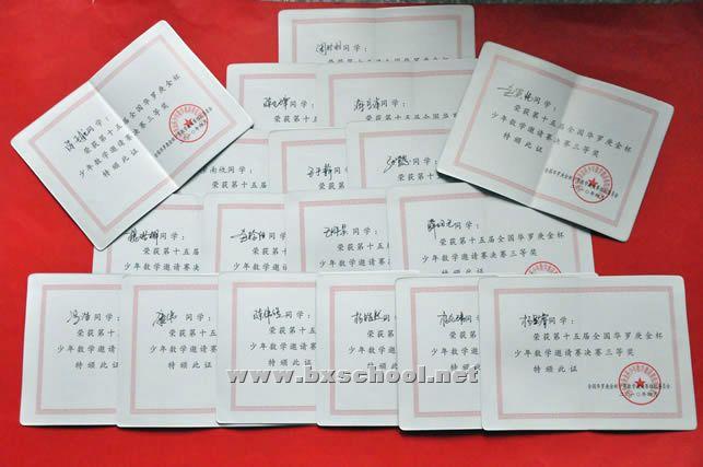 在本届“华杯赛”中,都江堰赛区共30人荣获三等奖,其中我校占18名,他们分别是蒋亨洋、赵寅帆、王于静、田雨欣、魏璐桷、陈九璋、赵晗阳、杨礼玮、王烨昊、周旷羽、冯浩、杨显睿、杨皓然、康伟、陈伟俊、薛均元、陈天航、张懿。