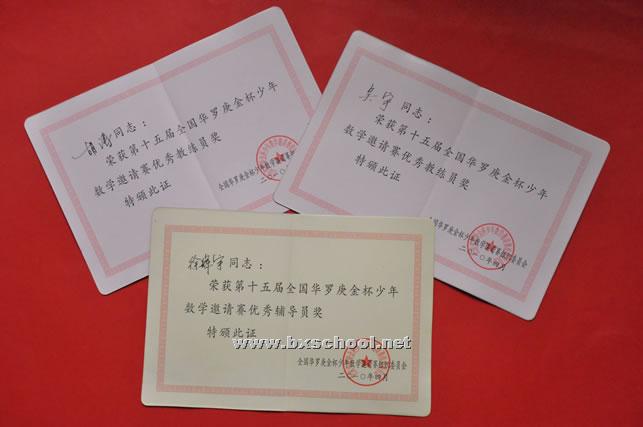 由于我校同学在本次“华杯赛”上的突出表现,吴宇老师、胡涛老师、陈辉宇老师被评为全国第十五届“华杯赛”优秀教练员。