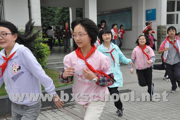 2010年5月12日,地震两周年,北小实外校举行了紧急逃生演习。 下午4:35,下课时间,同学们正在不同的区域玩耍,脸上洋溢着笑意。突然,警报拉响,老师们迅速奔赴自己的岗位,指挥和守护学生疏散;同学们反应敏捷,分别从不同的位置开始跑向操场。整个过程紧张有序,2分21秒,全体学生安全到达操场,班主任老师迅速清点人数,上报年级分管行政,各年级行政报告总指挥刘校长,刘校长作总结点评,表扬师生的临危不乱,鼓励孩子们要更加珍爱自己的生命,团结互助,战胜困难!最后各班按路队返回教室,班主任根据演习情况作点评,再次对学生进行珍爱生命教育、心理健康教育、感恩教育。 此次演习非常成功,从安排到实施,学校高度重视,全员参与。上学期已经进行了上课时间演习和晚上突然停电的演习,同样达到了预期效果。 学校决定,以后还要多举行不同情况下的逃生演习,进一步培养师生的逃生本领,提高安全意识,保护自己!