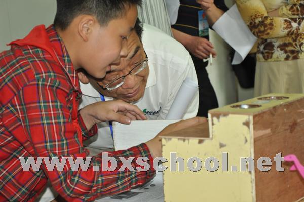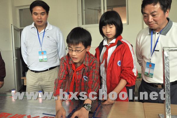 2010年5月27日,都江堰市人大主任王彝福、人大副主任徐守光、张振川,人大常务委员、教科文委员会主任王蜀勤等领导到北小实外校视察,参观了学校的科技教育展览室和学生机器人操作表演。 北小实外校自2004年建校以来,坚持全面实施素质教育,重视学生科学素养的培养,扎扎实实开展科技活动,先后获得了“中国少年科学院科普教育示范基地”、“全国少年儿童科学体验活动基地示范学校”和“成都市青少年科技活动基点校”等称号。近两百名师生先后在省市及全国科技比赛中获奖。 中午十二点十分,王彝福主任一行来到北小实外校,在学校董事长、校长的引导下参观了校园,来到科技展览室,观看了同学们制作的科创作品。在首届“北小实外杯”机器人竞技场创意大赛中获金奖的小选手们向领导们演示了机器人竞技场创意作品。王彝福等领导对同学们的操作表演作出高度评价,希望大家再接再厉,爱科学、学科学、用科学,早日成为祖国栋梁,期待北小实外校继续走科创教育特色之路,为都江堰培养更多的“小小科学家”。 市人大主任王彝福等领导在董事长、校长引导下参观校园