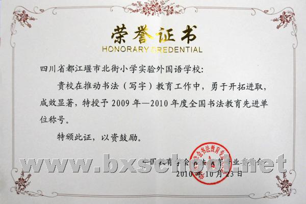 2010年10月23日,中国教育学会书法教育专业委员会授予我校2009—2010年度全国书法教育先进单位的称号。