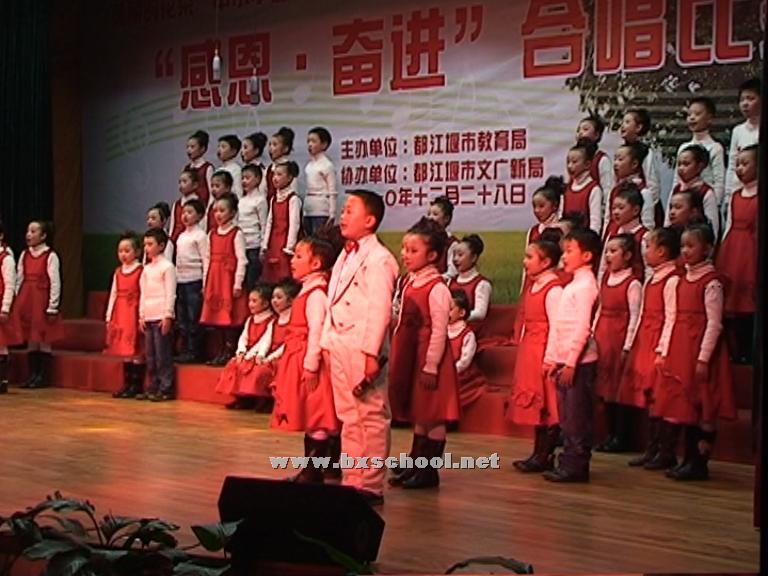 十二月二十八日,学校“童心飞扬”合唱团参加都江堰市“感恩奋进”合唱比赛,孩子们精神饱满,情绪激昂,一首《因为有你》感动所有在场观众和评委,一举获得一等奖。