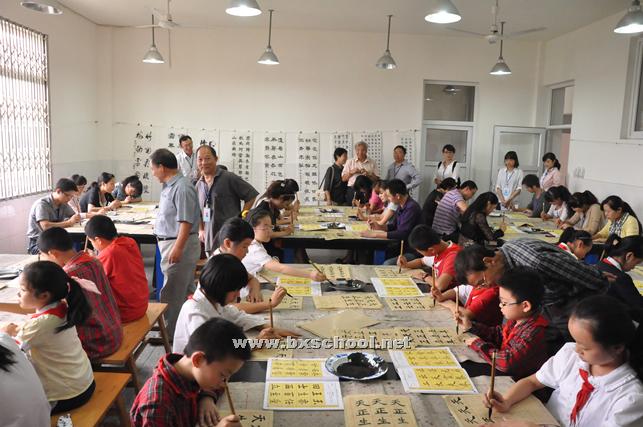 为了实现我校以“认认真真写字,踏踏实实做人”为准则,以“写字促学生习惯养成”为理念,让每位学生能写一手“规范、端正、整洁、美观”的汉字。我校于2011年9月15日迎来中国教育学会书法教育专业委员会秘书长杨淑琴女士、副秘书长王维义先生一行,对我校创建“全国写字实验学校”进行评估验收;参会的还有成都市教育学会书法教育专业委员会会长陈守常先生、成都市教育学会书法教育专业委员会秘书长陈家礼先生、都江堰市教育学会常务副秘书长及都江堰市教研室理论室主任高志君先生、都江堰市教育局教育科小教科副科长王林女士、都江堰市教育局少工委总辅导员王艳女士、都江堰市教研室教研员徐建先生。此次创办活动得到了全校师生的大力支持,取得了圆满的成功。
