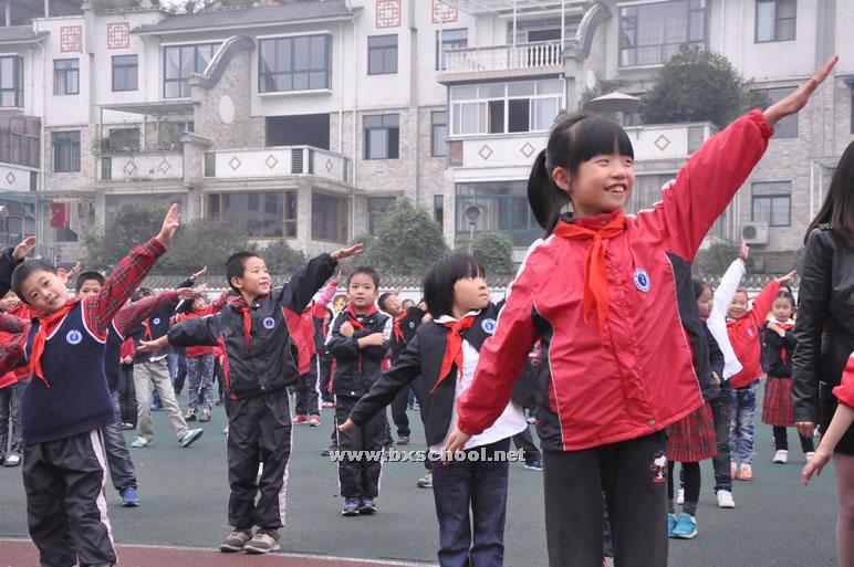 我校将排舞与每天阳光锻炼一小时结合起来,将排舞推广到学生当中去,孩子们在学习当中既锻炼了身体,又找到了乐趣。而我们交给孩子们的曲目是由我们中国人自己编排的“红星闪闪”,歌词积极向上,对孩子们也起到了很好的教育作用。