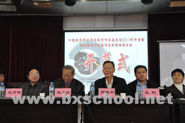 都江堰市市委常委宣传部长到会中国教育学会常务副会长、中国书法教育专业委员会理事长郭振有讲话都江堰市副市长严代雄致辞都江堰教育局副局长肖融到会《书法报》社长舟恒划讲话四川省教育学会书法教育专委会理事长张景岳作专题报告我校夏代成校长作《依托书法教育建设 促进学校内涵发展》的交流发言学生参观都江堰市各学校的书法展板专家书法展示专家书法展示专家书法展示
