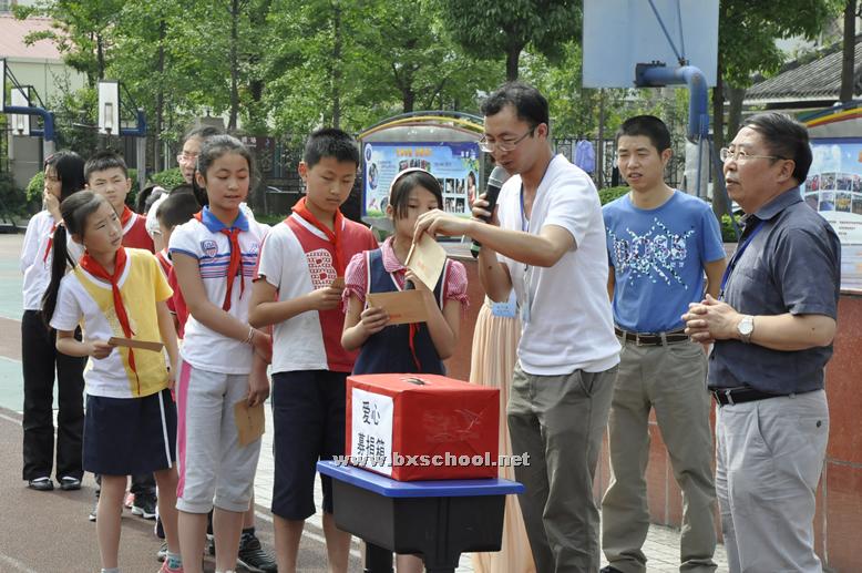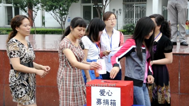 2012年6月12日课间操,同学们纷纷把自己的零花钱、压岁钱和参加社会实践的报酬捐献出来。学校教职员工也进行了爱心捐款。此刻爱心的传播在北小实外之间涌动,全校共募集到爱心资金163403.2元。 6月14日,北街小学师生也到我校送来了捐款表达他们的爱心。